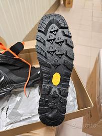 Usati una volta, come nuovi. vendo per taglia errata. Taglia 43. L'Ortles Couloir è il nuovo scarpone innovativo compatibile con i ramponi automatici, progettato per l'alpinismo e l'arrampicata su ghiaccio. È il primo di una nuova generazione di scarponi tecnici da alpinismo all'avanguardia di Salewa: è composto da materiali che lo rendono leggero, performante e preciso e quindi perfetto per raggiungere le vette più alte durante l'inverno. struttura leggera e resistente in fibra di carbonio con inserti in Kevlar® per una maggiore flessibilità nella zona inferiore dello stinco caviglia protetta dal Ankle Protector System che assicura piena libertà di movimento sull'asse longitudinale durante la camminata alta fascia in PU iniettato circonda la tomaia per la protezione da rocce, ghiaioni e graffi da ramponi punta e tallone sono ulteriormente rinforzati mantiene i piedi caldi e asciutti in condizioni di freddo e umidità ghetta traspirante e impermeabile realizzata in nylon laminato resistente all'abrasione con cerniera YKK termosaldata e resistente all'acqua polsino con inserti in silicone grippante per non fare entrare neve e ghiaccio zona punta dotata di una fodera extra imbottita con tecnologia Cold Shield il plantare Responsive riflette il calore