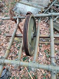 ascensore manuale per trasporto persone da installare presso appostamento fisso di caccia (tesa ai colombacci)su tubi da impalcatura. l'attrezzatura è composta da due ruote vere da ascensore fissate su barra con cuscinetti e installate su piattaforme costruite con tubi innocenti, da installare a terra e in alto all' altezza desiderata. cabina in ferro con pedana metallica ad altezza uomo, contrappeso utile alla salita e discesa per persona di circa 85 kg . cavo d'acciaio per un altezza utile del palco di 15/20 metri. si cede anche cavo nuovo di riserva come da foto.