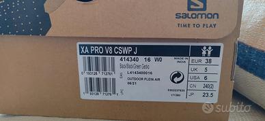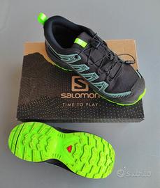Scarpe da trail e outdoor Salomon XA Pro V8 CSWP J da donna, colore nero con dettagli verde Gecko.