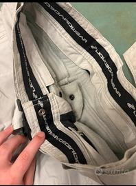 Salopette da neve di colore bianco, perfette per le giornate sulla neve. - Tessuto resistente. - Dettagli neri sul fondo gamba. - Cintura con fibbia. - imbottitura dentro rimovibile Le misure sono le seguenti, le vedete anche in foto: Circonferenza vita: 72 cm Lunghezza intera gamba (dalla vita all'orlo): 103 cm Altezza cavallo (dalla vita al cavallo): 32 cm