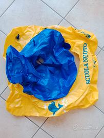 Vendo, anche separatamente, a € 5,00 il salvagente con mutandina e schienale per neonati in foto (giallo e blu) e a € 10,00 quello propedeutico per il nuoto (rosso e bianco).