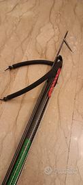 Fucile subacqueo in carbonio 28mm, asta tahitiana diametro 6.5mm, completo di sagola in dyneema da 1.5mm doppio giro, parastrappi C4, elastico da 16mm, predisposto per mulinello.