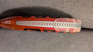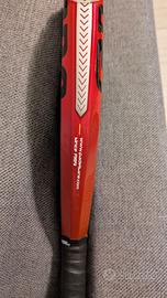 Comprata il 4 ottobre, usata non più di 10 volte. Perfetta, senza nessun graffio. Nuovissima. Usata con cura e senza aver mai sbattuto neanche alla griglia. Ottima racchetta per il gioco da fondo, ma anche aggressiva e con fondo ruvido che aiuta nelle palle tagliate. La cambio perche' ne ho vinta un'altra. Peso quando arrivata a casa 162 g, a cui ho aggiunto un overgrip e una protezione molto spessa in testa. La protezione si può rimuovere e sostituire.