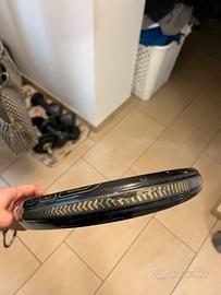 Vendo sane aggressor evolution diamond omega… piatti in perfette condizioni , solo due sbucciature estetiche sulla testa( non crepe ) e qualche zona senza vernice causa cambio del copritesta per poter fare la foto… versione molto leggera ( 362 grammi con overgrip) e bilanciamento a circa 27…la metteró sottoprezzata per la qualita e lo stato del prodotto , perché non voglio tenerla in disuso , quindi prezzo non trattabile