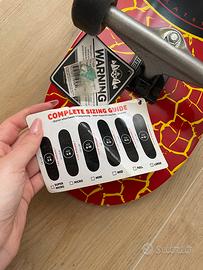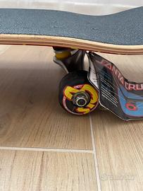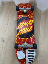 Skateboard marca Santa Cruz, con grafica del marchio e cartellino nuovo ancora applicato. La tavola si presenta in buone condizioni; tuttavia, sulla parte anteriore (punta) è presente una piccola scheggiatura del legno.