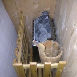 Sauna EFFEGIBI, completa di tutti accessori interni. Quadro elettrico già predisposto per impianto 220V. Base 160x160 cm Altezza 200 cm Condizioni pari al nuovo.