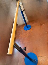 Salve! Sono una ragazza che ha praticato per molti anni danza classica, vendo questa sbarra per inutilizzo dato che da anni ho deciso di praticare solo danza contemporanea. La sbarra è regolabile in altezza con due manovelle, si possono esercitare comodamente due persone, una da un lato e l'altra dall'altro. La sbarra è stata realizzata da un amico di famiglia falegname di professione. Spero che possa interessare a qualcuno appassionato di questa bellissima arte! Lascio qui sotto le misure!