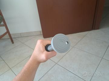 85 cm, estremità gommate, non danneggiano nessun tipo di porta o muro, qualità decathlon.