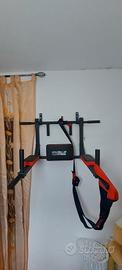 Sbarra per trazioni,da poter utilizzare per fare anche i tricipiti. molto solida e resistente. Tenuta in maniera ottimale.