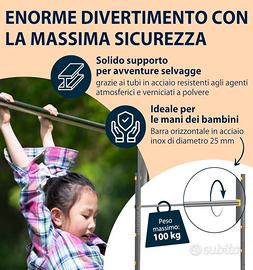 MONTAGGIO FACILISSIMO - Ricevi la barra ginnica con materiale di fissaggio. Dimensioni 204x123x5cm (50cm scompaiono nel terreno), adatta per l'installazione in piccoli giardini.