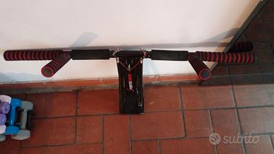 Sbarra per trazioni e dip, portatile, modello PullUp&Dip, praticamente nuova, completa di borsa e accessori per fissaggio e trasporto. Vendo a 100 euro.