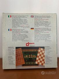 Scatola oroginale e regole del gioco presenti, confezione ormai fuori produzione. Completano la scacchiera, la DAMA e la TRIA, tutti i pezzi sono in legno pregiato.