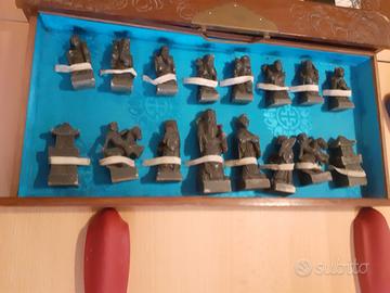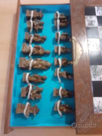 scacchiera 45 cm per 45 cm con cassetti per i pezzi e si chiude a valigia .