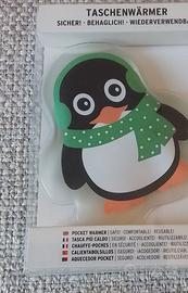 piccolo scaldameni portatile a forma di pinguino. nella sua confezione originale.