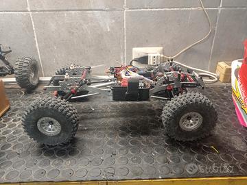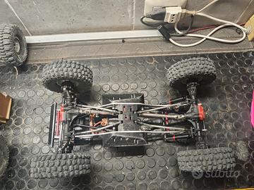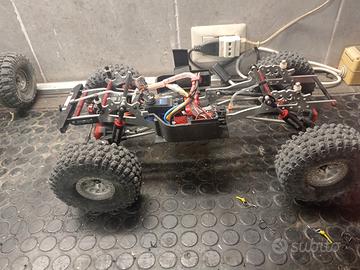 Scaler extreme, ponti traxsass trx4 cloni con ottoni, alta sterzata, gomme injora su cerchio alluminio da 1.9, ammortizzatori olio 400 con molle morbidissime, servo digital da 40 kg più servo verricello, esc 1060 hobbywing, motore brushed torque tuned, carrozzeria praticamente nuova. Il tutto con pochissime scariche, completo di tutto tranne radio 350€