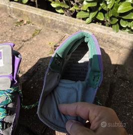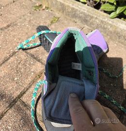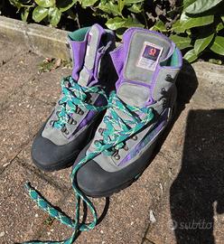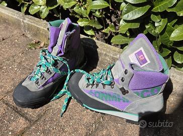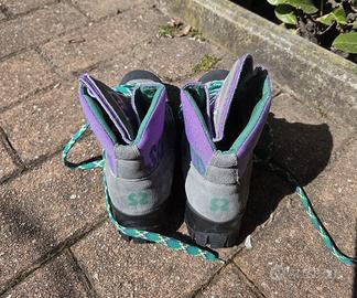 Scarpe da montagna San Marco con un design robusto e colori vivaci. - Tomaia in tessuto e pelle scamosciata. - Dettagli viola. - Lacci bicolore. - Taglia: US 9