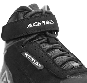 Logo "ACERBIS" presente su velcro anteriore e fettuccia posteriore. Logo "A" presente sul lato esterno del tallone