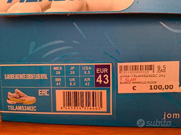 Scarpa da padel JOMA TSLAMS2402C numero 43, colote bianco lemon fluo. Scarpa nuova, mai indossata.