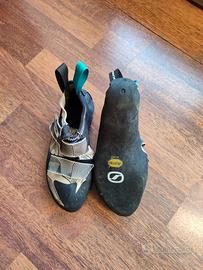 SCARPA Quantic, pari al nuovo, usate letteralmente 3 volte perché troppo piccole. Vendo per errato acquisto. Scarpette da arrampicata da donna, numero 37. Originariamente pagate €110.