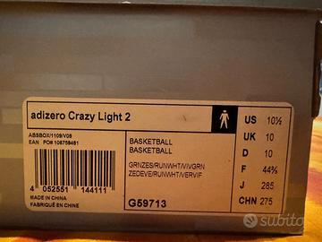 Scarpe Adidas Adizero Crazy Light 2 da pallacanestro taglia EU 44.5 color menta acceso + scarpe da calcio a 11 Diadora nere taglia EU 45 In ottime condizioni, pulite e sanificate Spedizione rapida e curata