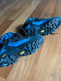 Scarpe alte da donna per trekking, marca Lytos. Colore royal blue e grigio, usate pochissimo in condizioni molto buone. Suola perfetta in Vibram. Lacci e ganci perfetti. Figurano misura 41 ma vestono bene il 39/40
