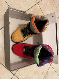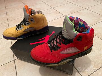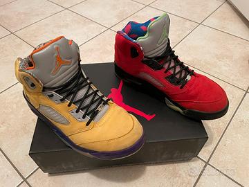 Vendo snikers scarpe da basket air jordan 5 retro, modello edizione speciale bicolore What The …. , scarpa destra gialla e scarpa sinistra rossa, taglia 45, 11us e 29 cm. Vendo a metà prezzo, 150 euro.