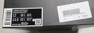 Scarpe da basket NIKE Lebron Witness IV colore rosso-nero * taglia uomo EUR46 - UK11 - US12 - cm 30 * taglia donna EUR46 - UK11 - US13,5 - cm 30,5 Scarpe in ottimo stato, usate pochissimo, in quanto poco dopo l'acquisto il giocatore ha deciso di smettere di giocare. Osservare foto della suola che prova il poco utilizzo.