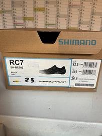 Vendo scarpe bici da strada Shimano rc7 come nuove usate mezz’ora su rulli ma troppo piccoli per me piccolo friso su suola contatto con pedale come da foto