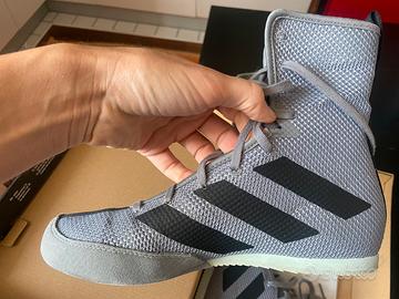 Vendo scarpe da pugilato in ottime condizioni, usate pochissimo. Marca Adidas Box Hog 3, taglia 40, colore grigio/ nero/verde