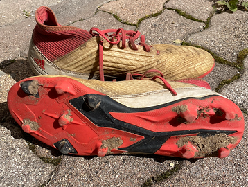 Scarpe da calcio Adidas modello Adidas Predator 18.3 TF - non tornano più bianche, ma perfettamente intere e pronte all'uso - calzino rosso integrato elasticizzato - comode e stabili - ideali per campi in erba naturale e sintetici (turf).
