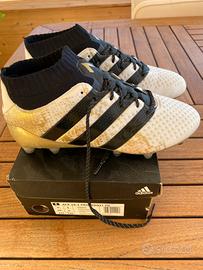 Vendo scarpe calcio Adidas colore bianco/oro/nere n. 39 1/3. Usate solo una volta x numero errato. Tacchetti di plastica! Come NUOVE