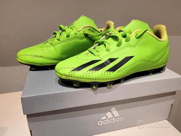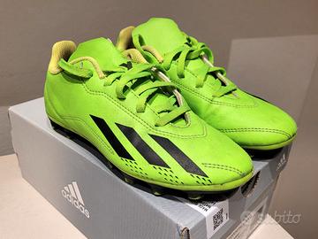 Vendo scarpe da calcio da bambino Adidas modello X SPEEDPORTAL.4 Flexible Ground numero 33, colore verde con loghi neri.
