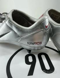 Scarpe da calcio Nike Total 90 originali in argento, perfette per gli appassionati di calcio e collezionisti. Design iconico e stiloso, ideali per partite su erba. Attualmente in ottime condizioni. Taglia 43 . Un must-have per ogni amante del calcio. RANGE PREZZO SUGGERITO
