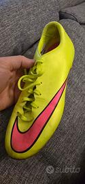 Vendo Scarpe da Calcio Nike Mercurial - Ottime Condizioni! Vendo un paio di autentiche scarpe da calcio Nike Mercurial in un'accattivante colorazione giallo fluo/neon e rosa shocking. Marca: Nike Modello: Mercurial (ideali per velocità e controllo) Taglia: 39 Colore: Giallo Fluo / Rosa Condizioni: Usate pochissimo, tenute in ottime condizioni. Presentano i normali segni di usura come da foto, ma la struttura è integra e pronta all'uso. Perfette per: Ragazzi/e che cercano una scarpa performante, leggera e dal look inconfondibile per il campo da calcio (FG - Fondo Duro/Erba).