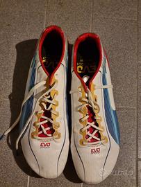 Vendo scarpe da calcio Puma evoSPEED originali, ideali per terreni morbidi, bagnati o fangosi grazie ai tacchetti in metallo. Le scarpe sono molto leggere e progettate per garantire massima velocità e sensibilità nel tocco di palla. taglia 40 e mezzo.