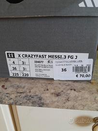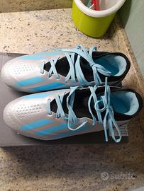 Vendo (mai usate) scarpe da calcio Adidas di Messi. Acquistate prima dell'estate, mai usate per crescita inaspettata del piede di mio figlio.