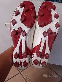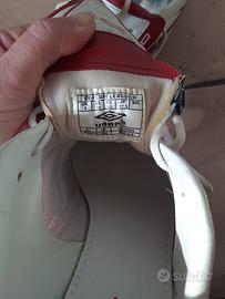 Colore bianco perla con particolari a contrasto in borgogna (logo sul lato esterno e sulla linguetta copristringhe, suola bicolore).