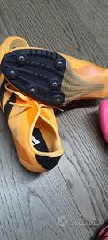 Causa cambio modello vendo scarpe chiodate da atletica per velocista, dai 60m ai 400. Entrambe in ottime condizioni. Le gialle nuove e mai usate, causa errato numero. Sono tutte il 44 (28cm). Vendo a 20 euro a paio vendibili anche singolarmente.