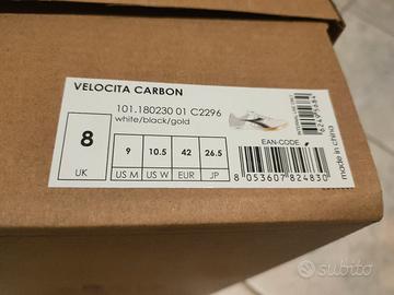 Scarpe chiodate Diadora Tg. 42 "Velocità Carbon" NUOVE mai usate ancora in scatola con: chiodi, sacca, e stringhe di ricambio. Performanti per 100/200/400/ 110hs/100hs.