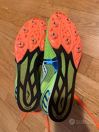 Scarpe chiodate da corsa per atletica leggera. Marca Saucony. Ottime condizioni, usate solo una volta. Taglia 42 EU. Per UK e US vedi foto.