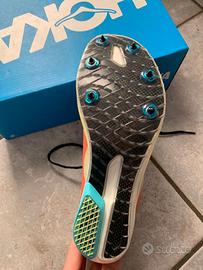 Scarpe chiodate per distanze da 800m e 3000m; modello Hoka Cielo x3 MD taglia 42 Inclusi 14 chiodi da 6mm e chiave per avvitarli.