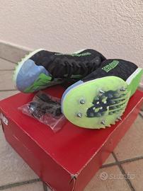 Vendo scarpe chiodate New Balance n. 40 (vestibilità piccola) da donna per atletica leggera, provviste di scatola originale e chiave per chiodi.