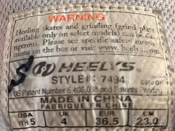 Vendesi scarpe con rotelle HEELYS numero 36,5 funzionanti ed il buono stato.