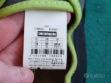 Scarpette Simond per arrampicata - MODELLO BASE di Decathlon Perfette MAI usate e tenute in sacchetta di stoffa in un armadio --Misura EU 42 (cm 27)- Roma (prezzon non trattabile)