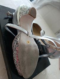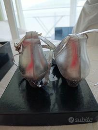 vendo scarpe da ballo marca calzaturificio Charles,numero 35, per bambina, colore argento con strass. usate poche volte. scarpa fatta a mano con suola in pelle rovesciata.
