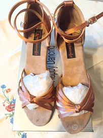 sandali raso color bronzo per ballo latino americani e caraibici TG 41 tacco 50 Rocchetto suola bufalo Happy Dancing