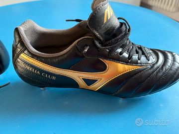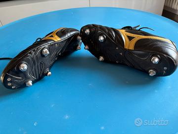 Scarpe da xalcio Mizuno in pelle a 6 tacchetti. Compreso nel prezzo anche scatola conn10 tacchetti di ricambio. Scaroe usare pochissimo. Taglia 40,5