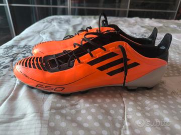 Modello F50 adizero TRX HG, codice U44301 Suola HG per terreni compatti multi superficie, adatta anche a campo da calcetto "moderno", quelli con l'erba alta e la gommina per intenderci. Leggerissime, ideali per chi ha il piede magro e abbastanza stretto. Hanno qualche anno, ma sono COME NUOVE, usate un'ora e poi messe nell'armadio per cessata attività. Erano il modello top di gamma. Inclusi due set di solette per personalizzare la calzata. Misura 13 1/2 US, 48 2/3 EU, 315 JP