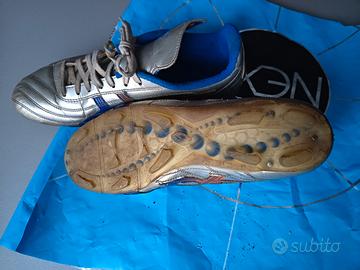 Scarpe da calcio Asics n 42, colore argento con dettagli blu e arancio.