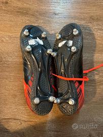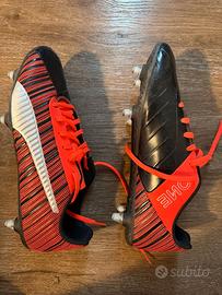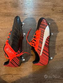 Scarpe da calcio Puma con un design vivace. - Tomaia nera con dettagli a righe arancioni. - Lacci arancioni. - Logo Puma sul sottopiede.